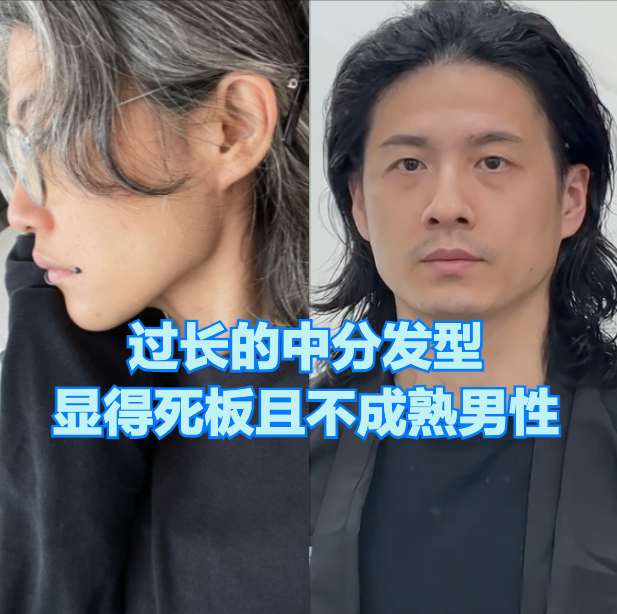 ❷ 过长的中分发型:显得死板且不成熟男性。